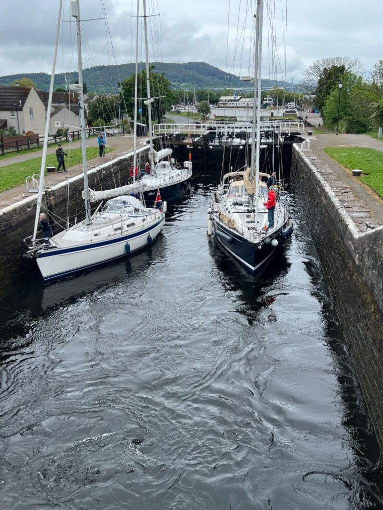 Veldig spennende dag. Vi kaster loss kl 0815 og tusler oss 20 min ned til åpningen av den sagnomsuste Caledonian kanalen. Kanalen går mellom Inverness og Fort William. Den er ca 10 mil lang og vi må bl.a. krysse Loch Ness og vi biter negler. Sjøuhyret Nessy bor jo, som kjent, godt gjemt i sjøen. En stor del av kanalen er laget av forkastningen Great Glen. Forkastning? Hvem har kastet hvem hvor for hva? Arne blir pedagogisk og forteller oss at det er en sprekk i jordskorpa etter jordskjelv. Kanskje sprekken utvider seg fremdeles, men vi kommer oss vel igjennom før sprekken i så fall blir for stor og svelger både Nessy og Capraia med mann og mus. Vel, mus har vi jo ikke om bord så vi får vel strengt tatt korrigere til bare «svelger Capraia med mann uten mus».