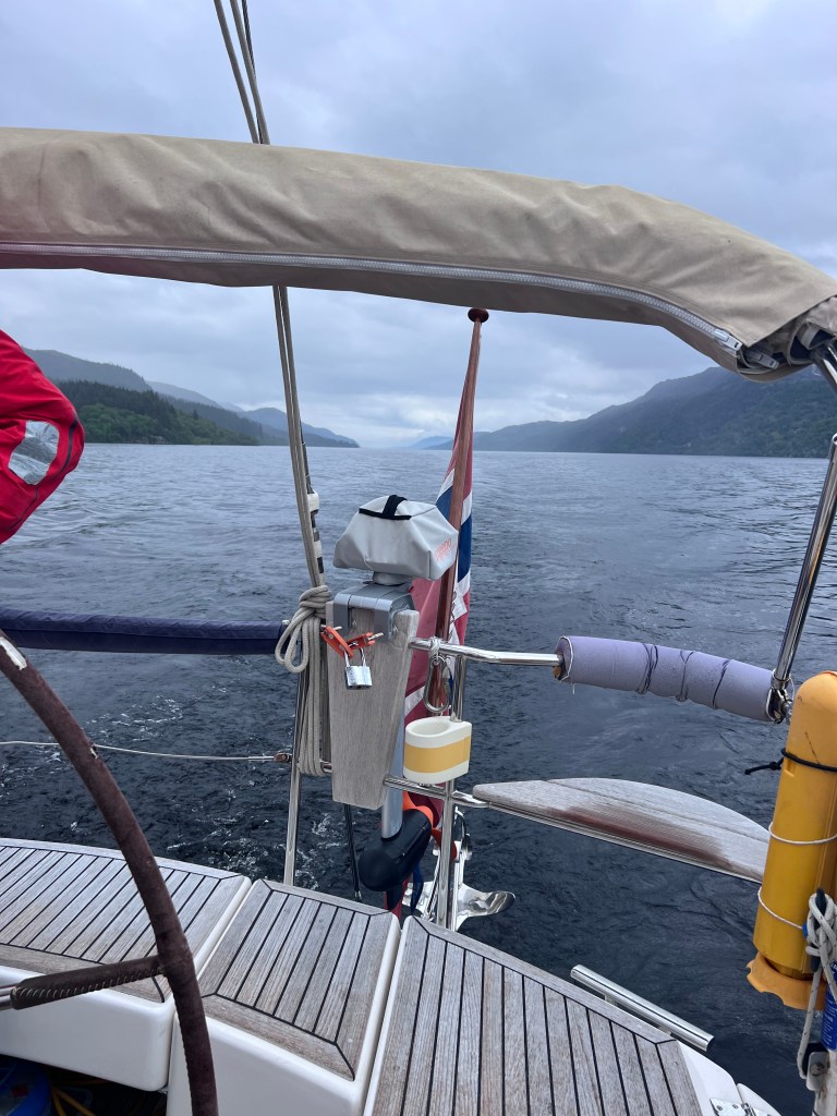 I skrivende stund går vi for motor på Loch Ness. Det er et vakkert sted, men for oss fra Norge er det «presis som hemma» og egentlig litt skuffende. Vannet er brunt og skittent av en eller annen grunn og bading og fylling av vanntanker er helt utelukket. Dessuten har vi prøvd alle mulige teknikker på å få manet frem uhyret Nessy, men uten hell eller uhell. Vi tør ikke å kaste ut fiskesnøret i tilfelle vi skulle få det store nappet, så da ble det å krype ned i salongen og skrive litt på denne bloggen isteden.