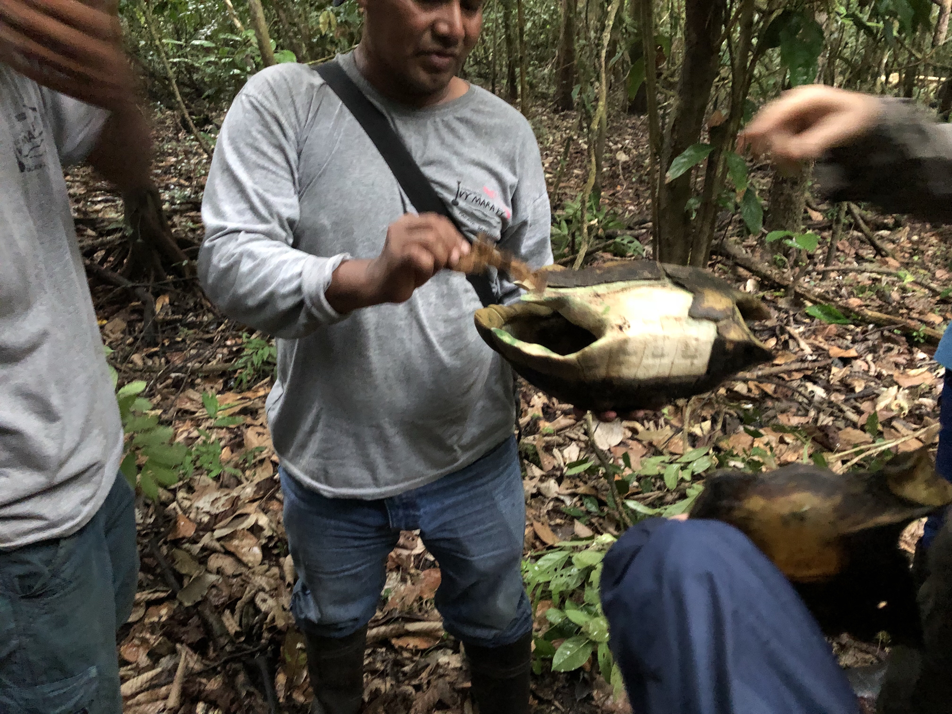 Det ble ingen anakonda på turen men noen enormt store og imponerende trær og skogsmedisin inkl cat claws som vi drakk rett fra en liane på treet. Vi fant også et tomt krokodille skall. Jaguaren hadde tatt den.